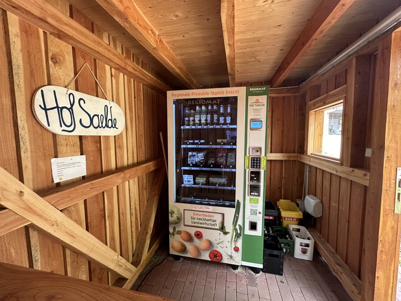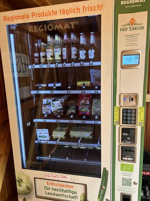 Der Automat auf unserem Hof wird täglich mit frischen und regionalen Produkten gefüllt. Unter anderem finden Sie hier erfrischende Limonaden, Hofeier, kleine Snacks und Kekse.