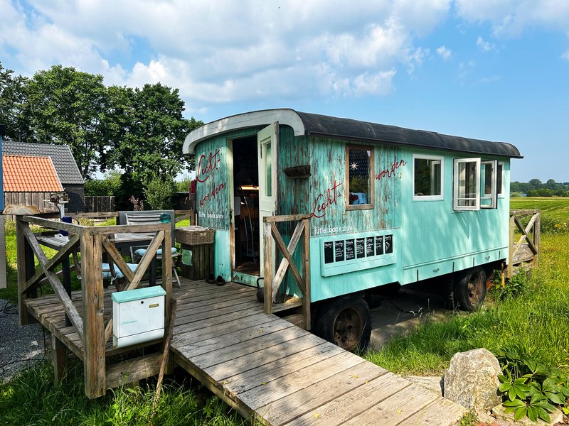 Der alte DDR-Imkerwagen wurde 2020 zu einer kleinen Backstube umgebaut. Die lütte backstuv verwendet ausschließlich Bio-Rohstoffe und Zutaten - seit März 2021 mit Bio-Zertifikat. Das Getreide für die Brote und Gebäcke wird auf dem nahgelegenen Bioland-Hof Mevs in Schinkel angebaut und frisch vermahlen. Aufgrund der besseren Verträglichkeit wird nur wenig Weizen, sondern fast ausschließlich Dinkel und Roggen verwendet. Die Brote werden mit „wageneigenen“ Sauerteigkultur gelockert. Wer mag, kann auf der kleinen Veranda des Bauwagens oder auf der Bank den Blick auf den Wittensee genießen. Ab dem Jahr 2022 wird es für Fahrradfahrer und Spaziergänger auch Kaffee und Kuchen geben. Schau herein und suche Dir Dein Brot selbst aus. Alles ist versiegelt verpackt.
